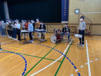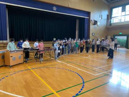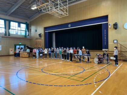 音楽交流会に向けて1 講堂で合奏の練習です。