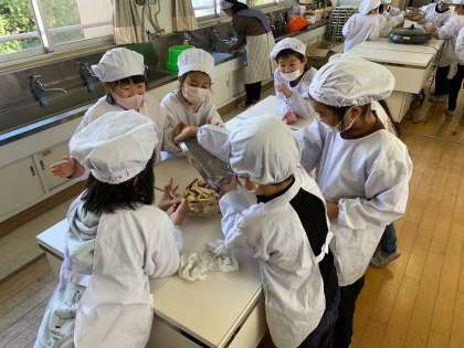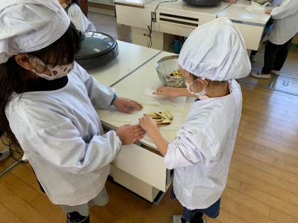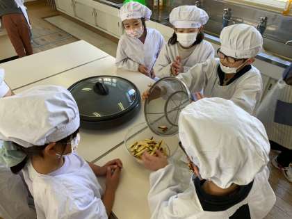 おいもパーティー2 まずは、いもの水気をとっていきます。