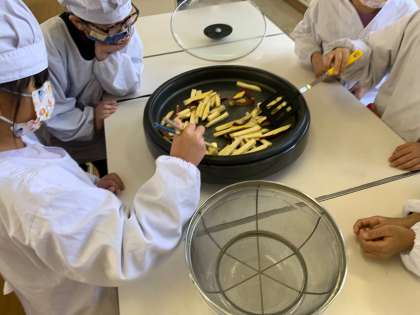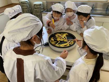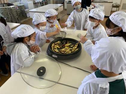 おいもパーティー5 バターをまんべんなくからめ、焼いていきます。
