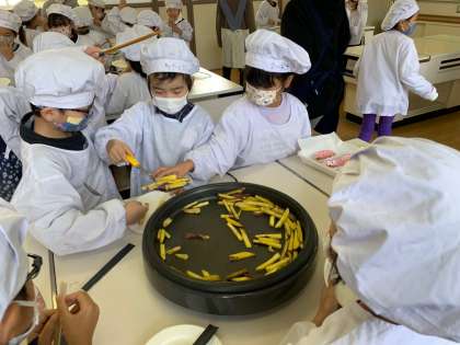 12月7日(水) 学習のようす 2年 生活10 公開日 2022/12/07 更新日 2022/12/07 お知らせ おいもオアーティー10 できあがりました。盛り付けていきます。1年生にもおすそわけです。 いいね(0)