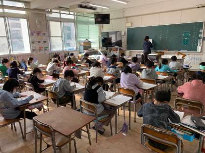 2学期のまとめの時期です。算数のテストに集中して取り組んでいます。