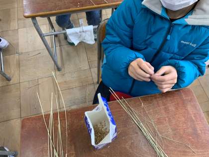 バケツ稲づくり4 最後は、みんなのものを一つにまとめ、精米します。