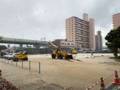 運動場の改修工事が始まりました。今回の工事は、運動場の土を入れ替えます。