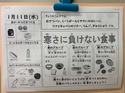 1月11日(水) 給食の時間 公開日 2023/01/11 更新日 2023/01/11 お知らせ 給食が始まりました。 ミートボールとやさいのカレーには、子どもにちょうどいい辛さで、おいしかったです。 いいね(0)