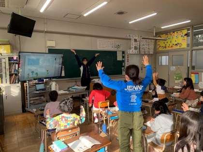 「みみずのたいそう」 からだぜんたいをつかって、ひょうげんしています。