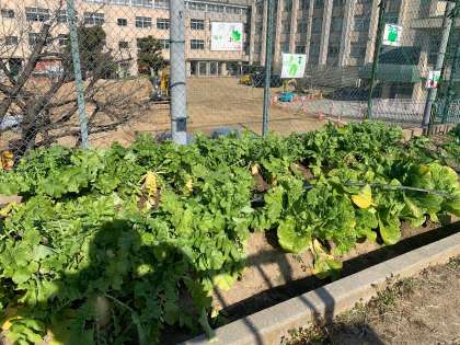 冬野菜部が育てているだいこんが、もうすぐ収穫できそうです。