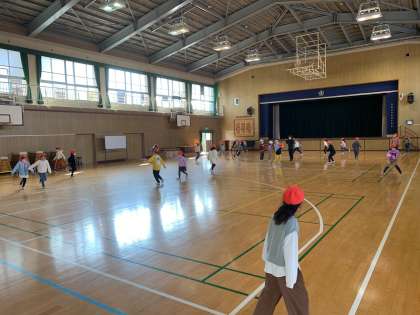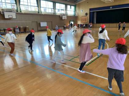 今日の休み時間は、2年生が自由に使える時間です。みんなでおにごっこをしました。