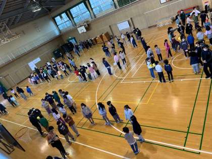 今日の集会は、体育館で行いました。ゴロゴロどっかんゲームです。楽しく活動できました。