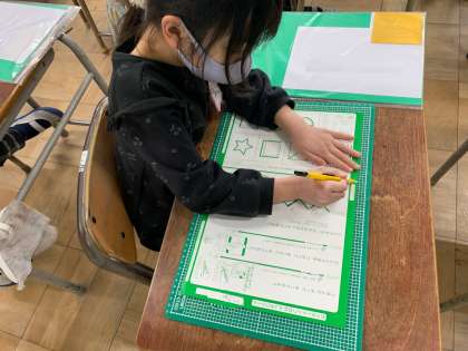 カッターナイフを使い、作っていきます、今日は、カッターナイフの使い方の練習です。
