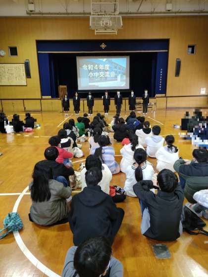 1月20日(金) 小中交流会 6年 公開日 2023/01/20 更新日 2023/01/20 お知らせ 松虫中学校生徒会主催で、小中交流会が行われています。金塚小学校・丸山小学校の6年生と、松虫中学校の生徒会の交流会です。中学校での生活や行事・部活動などについて教えていただきます。 いいね(0)