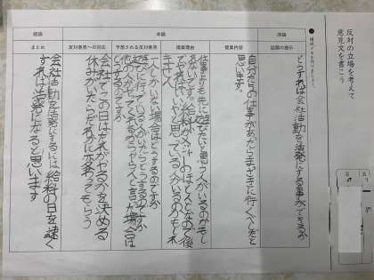 反対の立場を考えて、意見文を書こう 文章を組み立て、作文していきます。