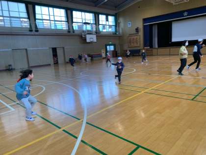 今日は、1年生が昼休みに体育館で遊べる日です。