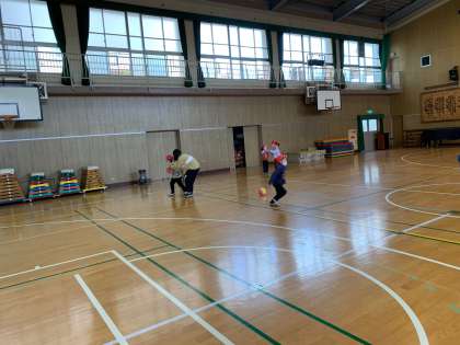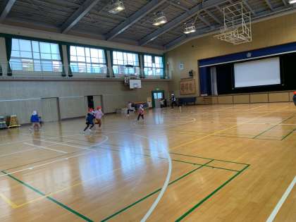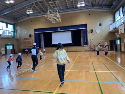 1年生にとって、大きな体育館です。元気いっぱい遊ぶことができました。