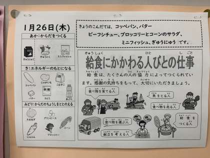 1月26日(木) 給食週間1 公開日 2023/01/26 更新日 2023/01/26 お知らせ 今週は、学校給食が昭和24年12月24日に始まったことを記念しての給食週間です。12月24日は給食がなく、冬休みになるので1月24日の週を給食週間としています。金塚小学校は、大阪市で最初に学校給食が始まった学校の一つです。 そこで、金塚小学校の給食のようすをご紹介します。 朝、前日のごみを出しから始まります。そして、その日に飲む牛乳が届きます。 いいね(0)