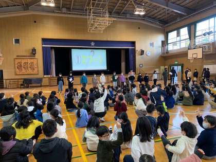 健康委員会の児童が、給食にまつわるクイズをしました。