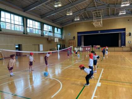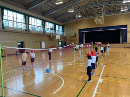 ソフトバレーボール4 さいごはせいれつし、れいでおわります。