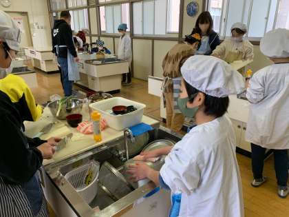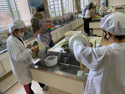 ごはんとみそ汁をつくってみよう4 使う前に鍋などを洗います。