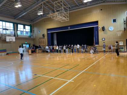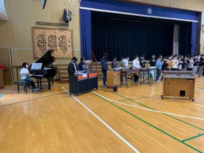 音楽発表会に向けて、講堂での練習が始まりました。リズムを合わせています。
