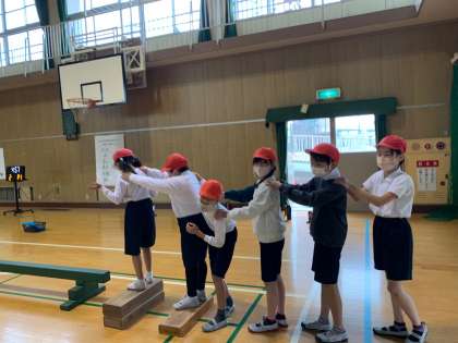 2月8日(水) 学習のようす 4年 体育5 公開日 2023/02/08 更新日 2023/02/08 お知らせ いろいろな動きに挑戦しよう5 グループで、工夫した動きについて話し合っています。 いいね(0)