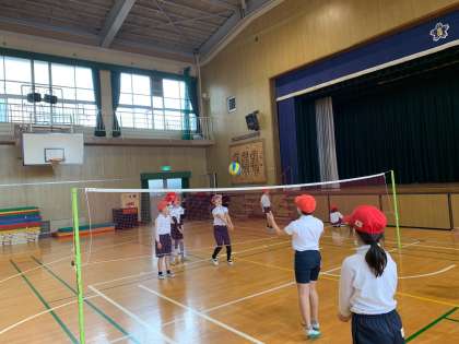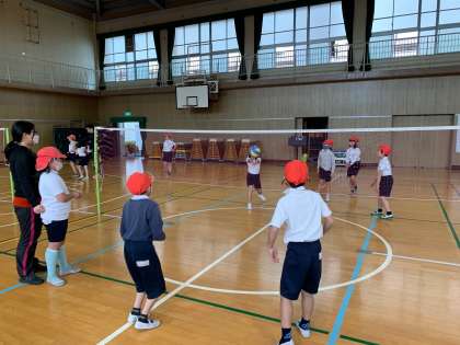 ソフトバレーボール2 声を掛け合い、練習しています。