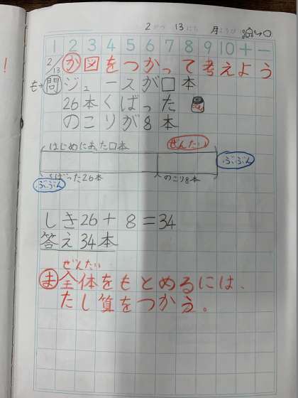 全体の量をもとめるときは、たし算をすればいいことがわかりました。