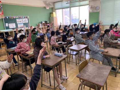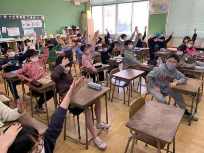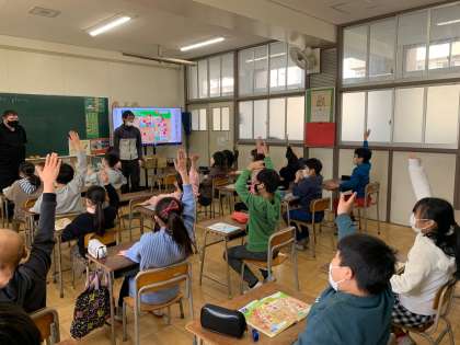 2月14日(火) 学習のようす 4年 外国語活動3 公開日 2023/02/14 更新日 2023/02/14 お知らせ RIGHT(右)と言ったら右手を挙げ、、LEFT(左)と言ったら左手を挙げます。ゲーム的な活動を取り入れ、大盛りあがりでした。 いいね(0)