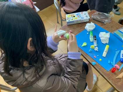 手芸クラブ1 手芸クラブでは、紙粘土づくりを体験できました。