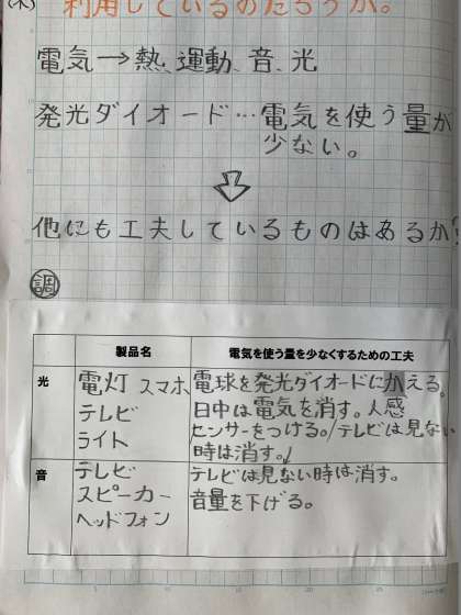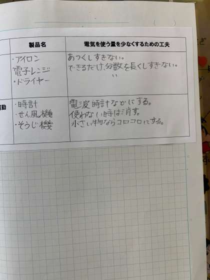 2月16日(木) 学習のようす 6年 理科 公開日 2023/02/16 更新日 2023/02/16 お知らせ 熱・光・音・運動として利用している電化製品ついて、電気の使用量が少なくなる工夫について考えています。 いいね(0)