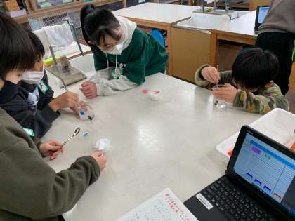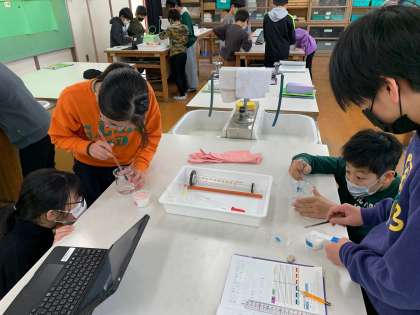 水の温度とものがとける量1 食塩とミョウバンを水にとかしています。