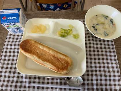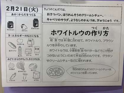 ほうれん草のクリームシチューは、あつあつでたいへんおいしかったです。
