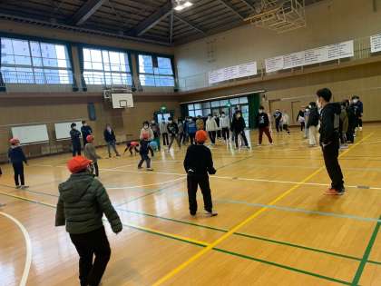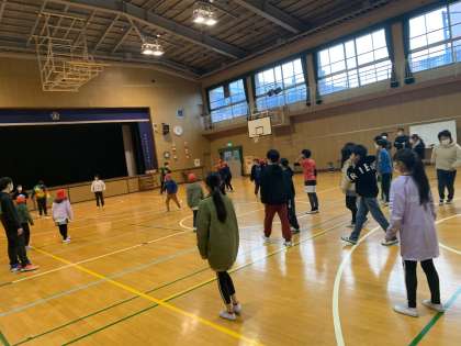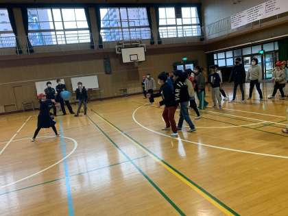 6年生と3年生2 ハンデとして、3年生のコートが大きくなっています。