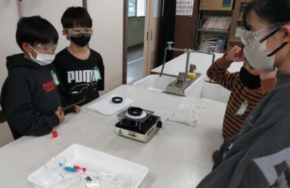 2月24日(金) 学習のようす 5年 理科1 公開日 2023/02/24 更新日 2023/02/24 お知らせ 水溶液を蒸発させるととけたものを取り出せるのだろうか。 前回の実験で作った水溶液をコンロで熱して粒が取り出せるか実験しました。 いいね(0)