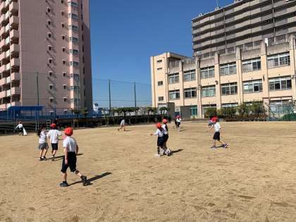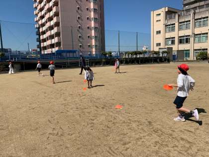 走り終わったら、すぐに片づけて、次のボールけりの準備を手際よくしています。