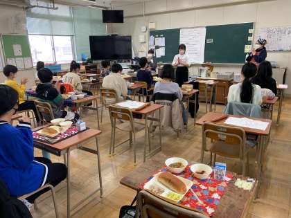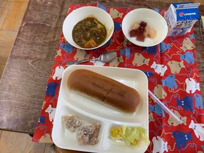 今日は、卒業お祝い献立です。子どもたちが大好きなフライドチキンもあります。