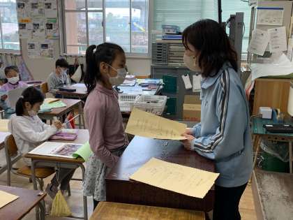 1年間頑張ったこと、成長したことを担任から一人一人に話しました。