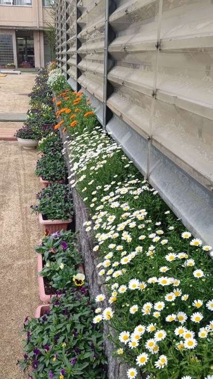 ノースポール・キンセンカ・ビオラ・パンジーなど、たくさんの春の花が咲いています。