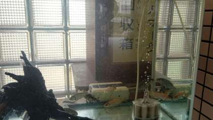 管理作業員さんが、池から採った卵をふ化させて、大事に育てていた鯉がこんなに大きくなりました。黒だけでなく、赤や三色の鯉もいます。もっと大きく育って、池にもどれればいいなと思います。