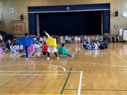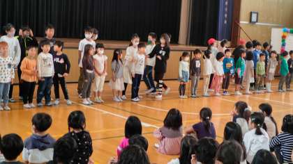 金塚小学校には、赤・ピンク・黄・緑・青の5色のメンバーから構成される金塚レンジャーがいます。入学を祝う会では、金塚レンジャーが中心となって、1年生の皆さんに金塚小学校のルールを教えてくれます。決めポーズも決まりました!