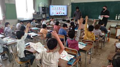 4月18日 学習の様子 3年生 公開日 2023/04/18 更新日 2023/04/18 お知らせ C-NETの先生と一緒に英語の学習をしました。英語で挨拶している子どもとその国の国旗を英語で答えていきます。どの児童も積極的に手を挙げて意欲的に発表していました。 いいね(0)