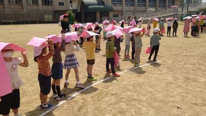 航空写真 2 公開日 2023/04/20 更新日 2023/04/20 お知らせ 飛行機が飛んできました。きれいな桜の校章になるように全員で画用紙を空に向かって掲げました。全校写真や学年写真も撮りました。気温が高かったので水分補給をしながらの撮影でした。暑い中でしたが、1年生も頑張りました。 いいね(0)