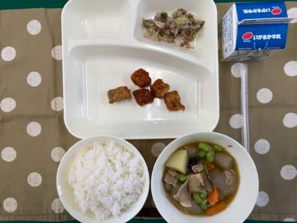 令和5年4月24日 本日の献立 公開日 2023/04/24 更新日 2023/04/24 お知らせ 本日の献立は ・まぐろのオーロラ煮 ・豚肉と野菜の煮もの ・キャベツの赤じそあえ ・ご飯 牛乳 です。 まぐろの体は水のていこうを受けにくい形で、せびれやはらびれをひれの根元にしまうことができるので、速く泳げます。「血あい肉(ちあいにく)」という筋肉が多く、長い時間泳ぐことに向いていると言われています。 いいね(0)