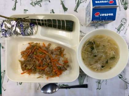 令和5年4月26日(水) 本日の献立(こどもの日の行事献立) 公開日 2023/04/26 更新日 2023/04/26 お知らせ 本日の献立は、・きんぴらちらし ・すまし汁 ・ちまき ・牛乳 です。 ちまきは、もち米や米の粉などで作ったもちを笹の葉でくるみ、蒸して作る和菓子です。 「子どもが元気で育ちますように」という願いがこめられています。 いいね(0)