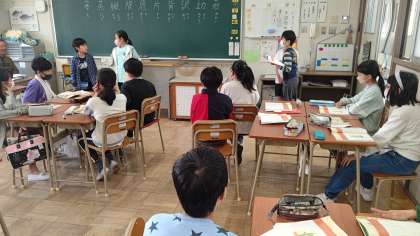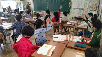 国語「サボテンの花」の朗読です。グループごとに地の文と会話文に分かれて発表しました。文章を覚えている児童もおり、先生も驚いていました。発表を聞いた後は、感想を述べあい、次の学習に生かします。