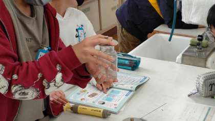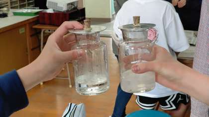 理科の学習です。物が燃えるときの気体の変化について実験しました。