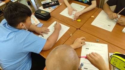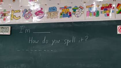 C-NETの先生と一緒に学習しました。自分の名前をアルファベットで伝える方法を学びました。