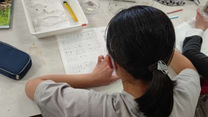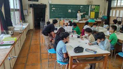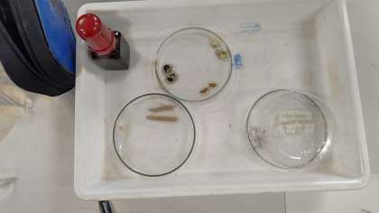 理科の学習です。子葉の養分について、ヨウ素液を使って調べました。