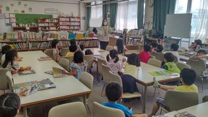 5月16日 学習の様子 1年生 公開日 2023/05/16 更新日 2023/05/16 お知らせ 火曜日は図書館の先生が来てくださっています。今日は2冊の本を読み聞かせを行いました。先生がページをめくりながら出す問題に、大盛り上がりで答えていました。図書の時間は、自分の好きな本を読むだけでなく、本の紹介や読み聞かせなども行い、子どもたちの読書意欲を高めています。 いいね(0)