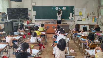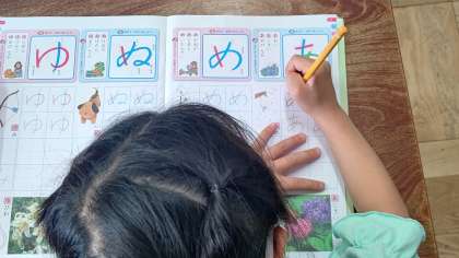 ひらがなの練習です。「あ」「め」の書き方について学習しました。