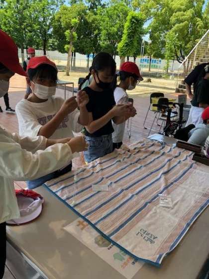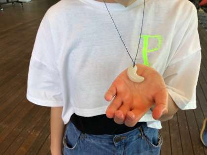 思い思いに磨いた勾玉で、ペンダントを作りました。