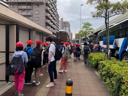 「いってらっしゃい!」と保護者の方々、先生たちも手を振り、子どもたちを見送りました。クラス全員一致団結して、楽しい活動になるといいですね。